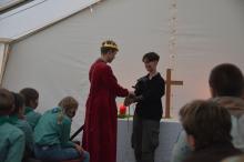 Als wir wieder im Lager waren, gab es dann Currywurst Pommes -es hat uns allen am besten geschmeckt. Vor allem hat uns der Naaaachtisch den Abend versüßt. Zum Tagesabschluss gab es noch einen Gottesdienst. Bei diesem hat König Artus uns zu verschiedenen Wetten herausgefordert und Felix ist sowas von hingefallen, aber Schnappi hat uns dann erklärt, dass Stärke nicht gleich Stärke ist, sondern er ist auch darum geht, das Stärke darin liegt, mit anderen zu arbeiten und man nicht immer seine Stärke in Form von Macht auszunutzen.